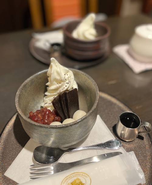 ソフトクリームメニューの中でも特に大人気の【珈琲ぜんざい】をご紹介いたします☆彡